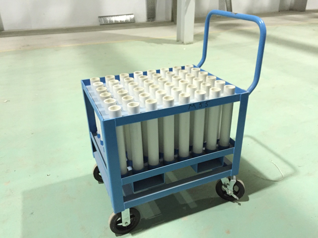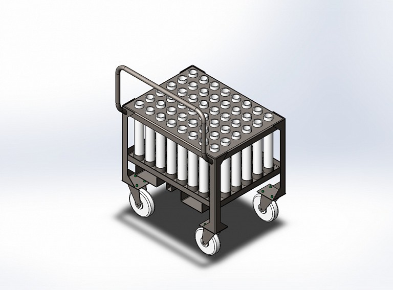 Тележка предназначена для перевозки шпилек для дизельного двигателя "GEVO". Тележка имеетнадежную конструкцию с усиленной столешницей.